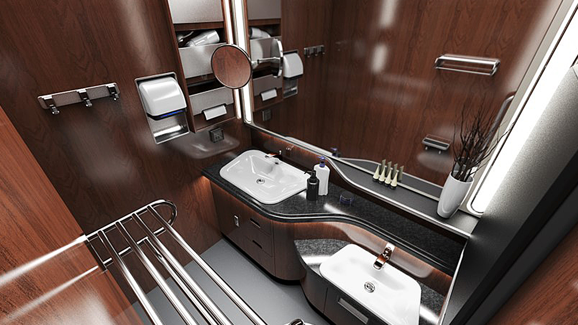 新設(shè)計(jì)按乘坐、用餐、乘務(wù)、洗手間、行李存放的功能劃分為5個(gè)區(qū)域,每個(gè)區(qū)域都配備了完整的功能設(shè)施。