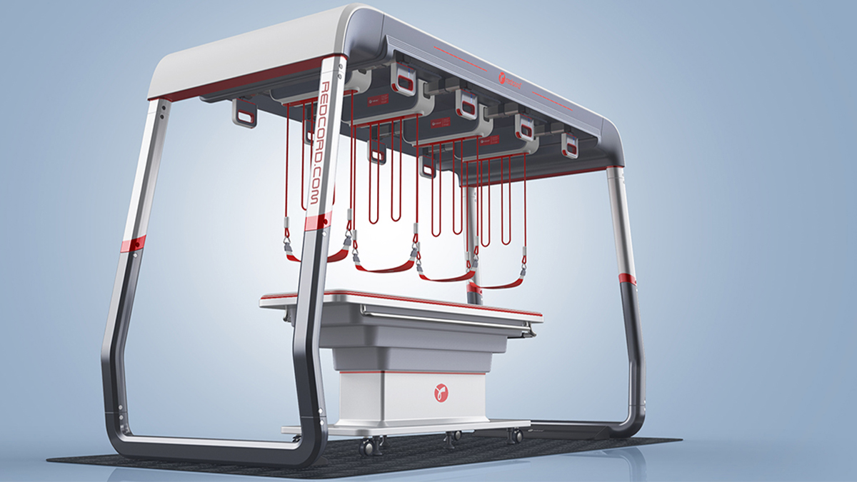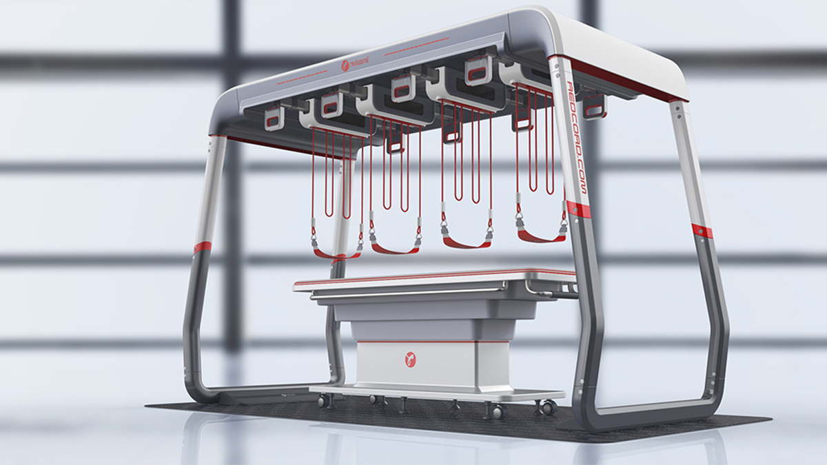 “紅繩“ 康復(fù)理療終端是一款集康復(fù)醫(yī)療和運動健身一體的設(shè)備。設(shè)計團隊將移動模組和醫(yī)療床進行有機組合,打造了一體化的外觀設(shè)計形象。