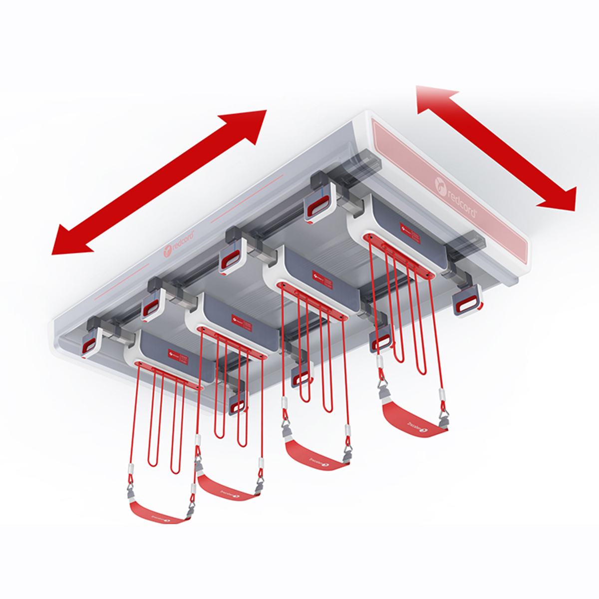 設(shè)計師給頂部配備了4套可安裝的模組,這樣可以保證覆蓋各種體重和身高的健復(fù)人員。醫(yī)療床的加入,使整體設(shè)備具備了更寬廣 的活動空間和康復(fù)動作,也能讓健復(fù)醫(yī)師更加方便操作。