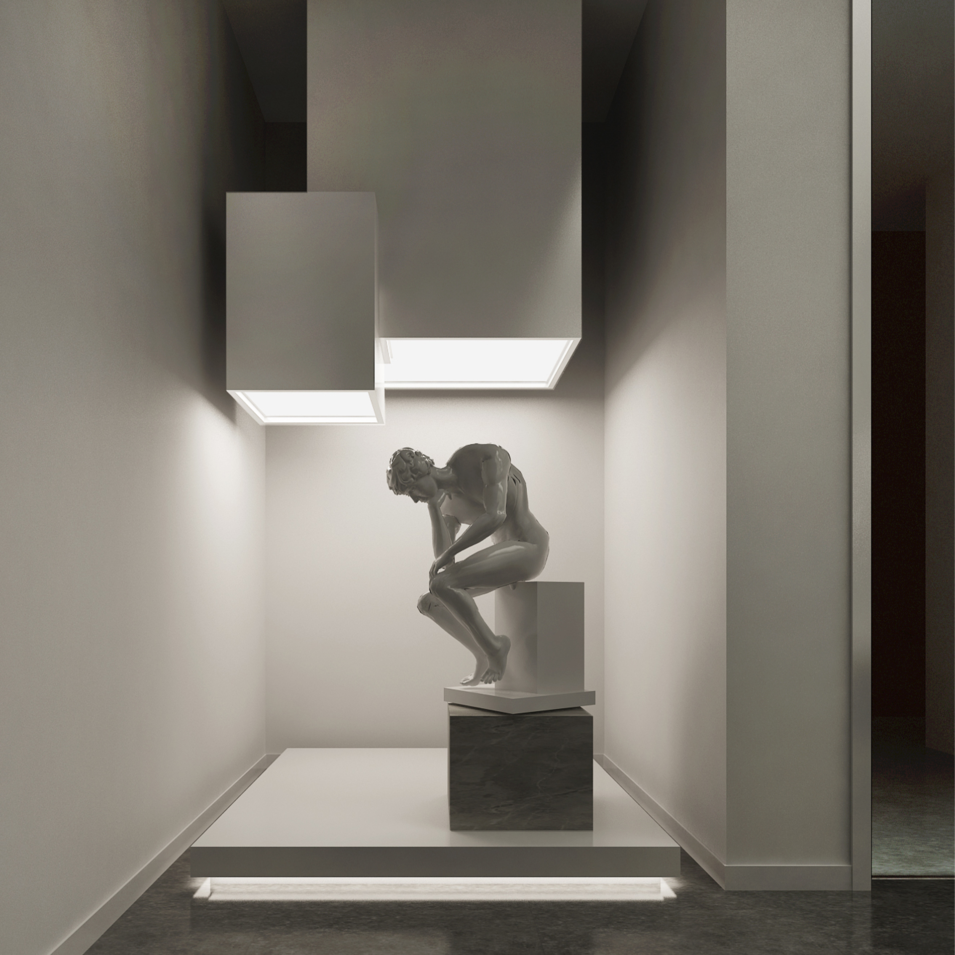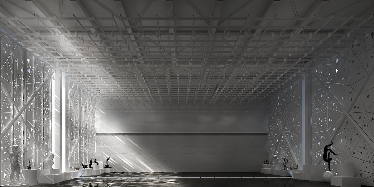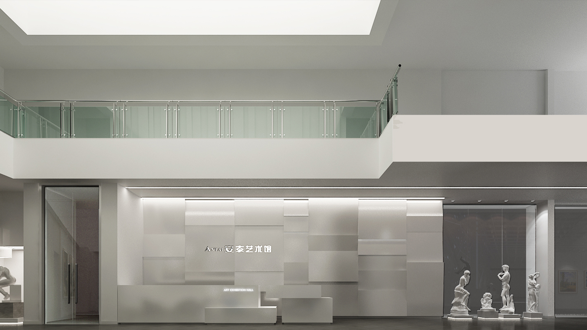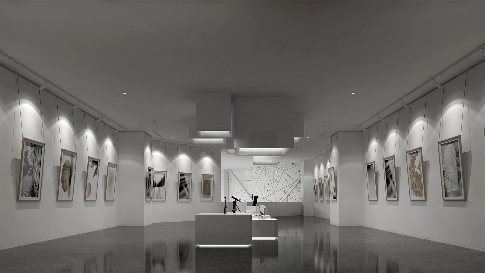 展館主要呈現(xiàn)黑白灰三色,黑白灰的色彩具有很高的審美價值,他們相互襯托,對比強烈,混合作用后會產(chǎn)生意想不到的藝術(shù)效果,產(chǎn)生千姿百態(tài)的節(jié)奏,極其富有韻律感和美感。這樣的空間不僅充滿情調(diào),更能襯托期間多彩的藝術(shù)品、豐富的畫作和內(nèi)涵的雕塑。