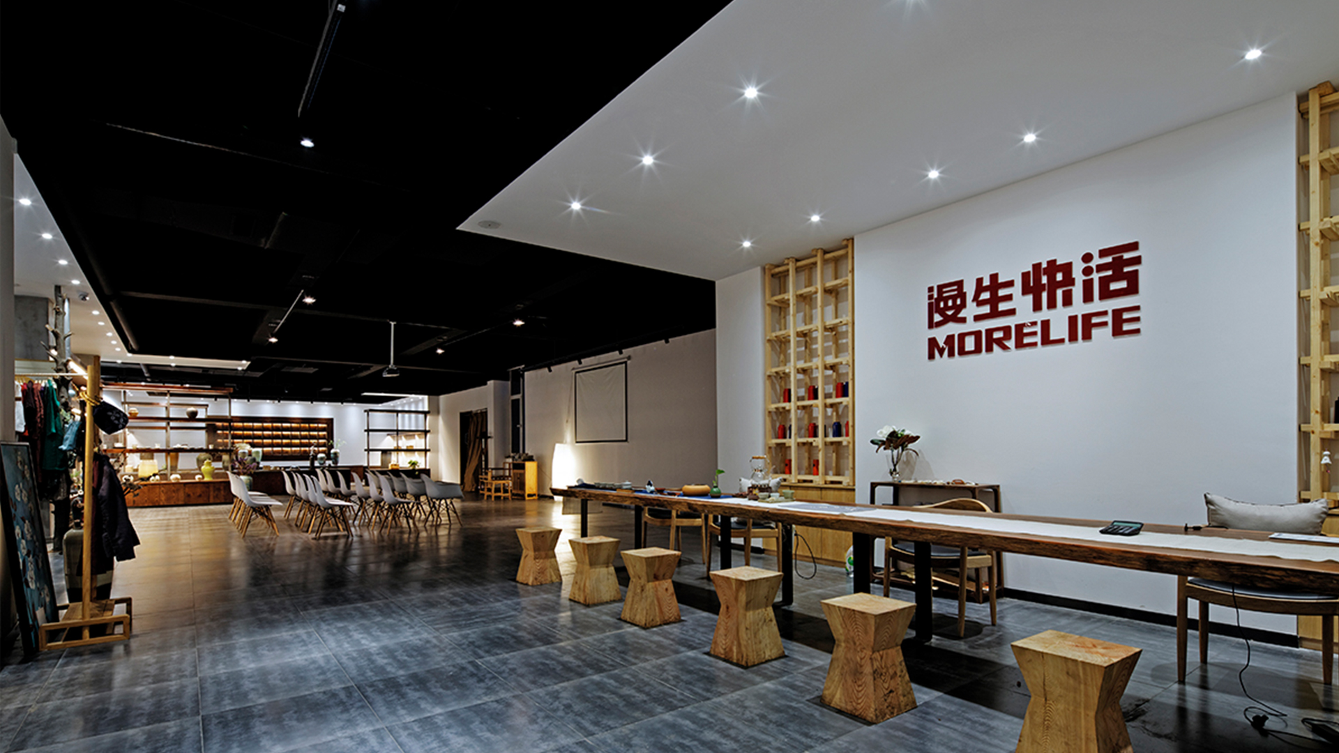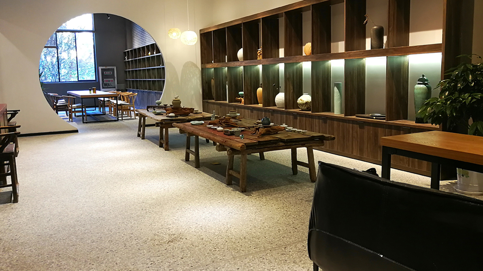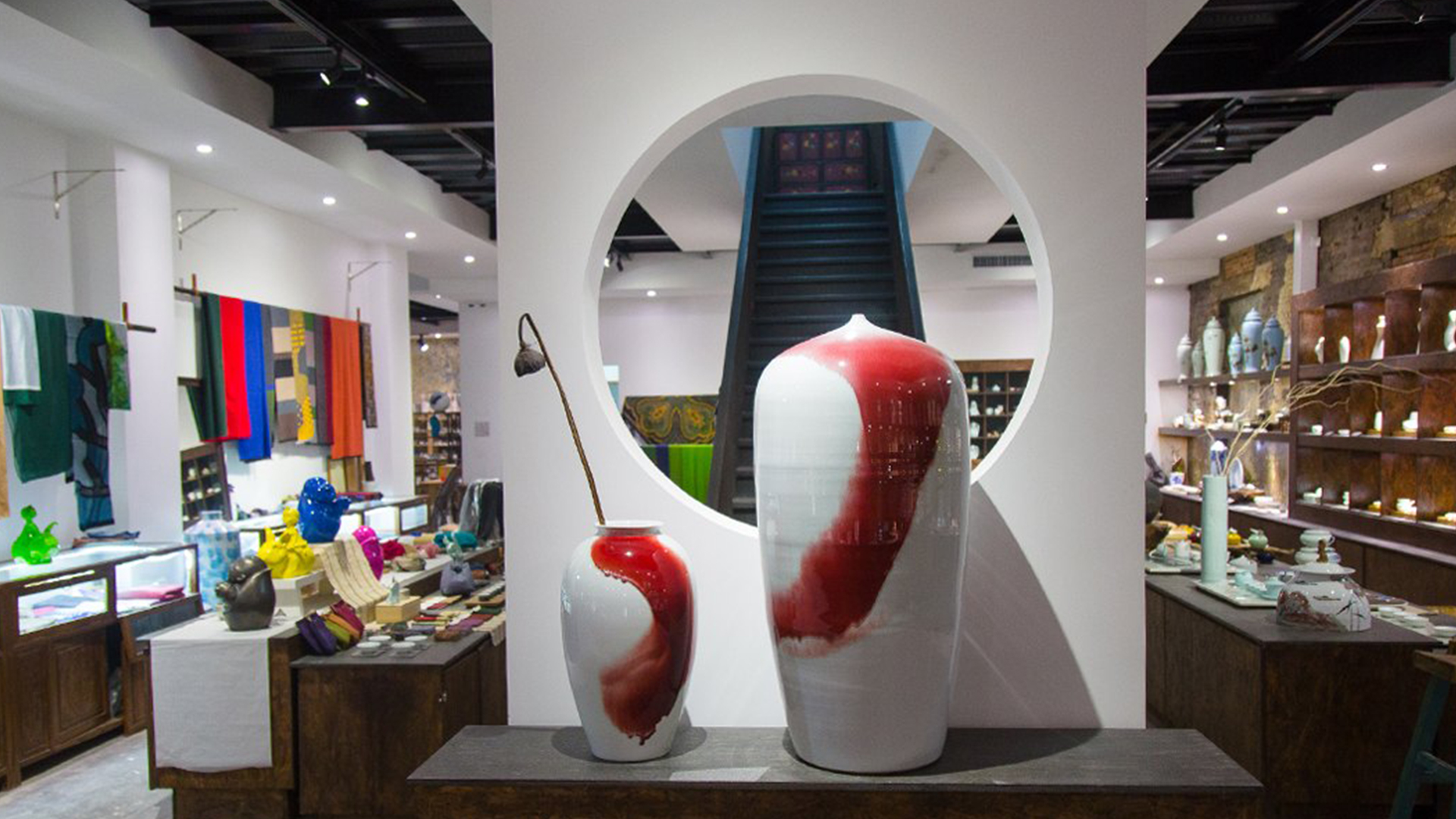 不爭論,不辯解,不過分堅持,讓本性自然釋放,也許有一天我們還會走向自己的反面。如果說平衡是世界的本來面貌,那么節(jié)制就是自我的修行。在欲望似乎沒有盡頭的今天,節(jié)制便顯得彌足珍貴。此項目運中江南園林中曲徑通幽之形,設(shè)計在方寸之間強化了藝術(shù)瓷器的雅致特別,進入后為一個集展示、零售、體驗及咖啡的綜合空間。一扇木門、一個櫥窗、一個景窗、一個圓形門廊,以多樣含蓄的方式與藝術(shù)對話。