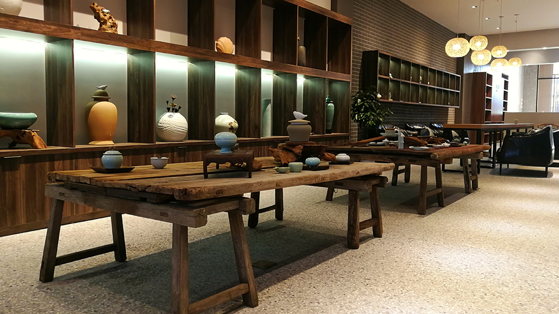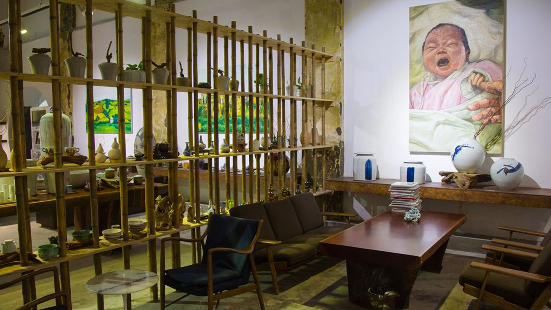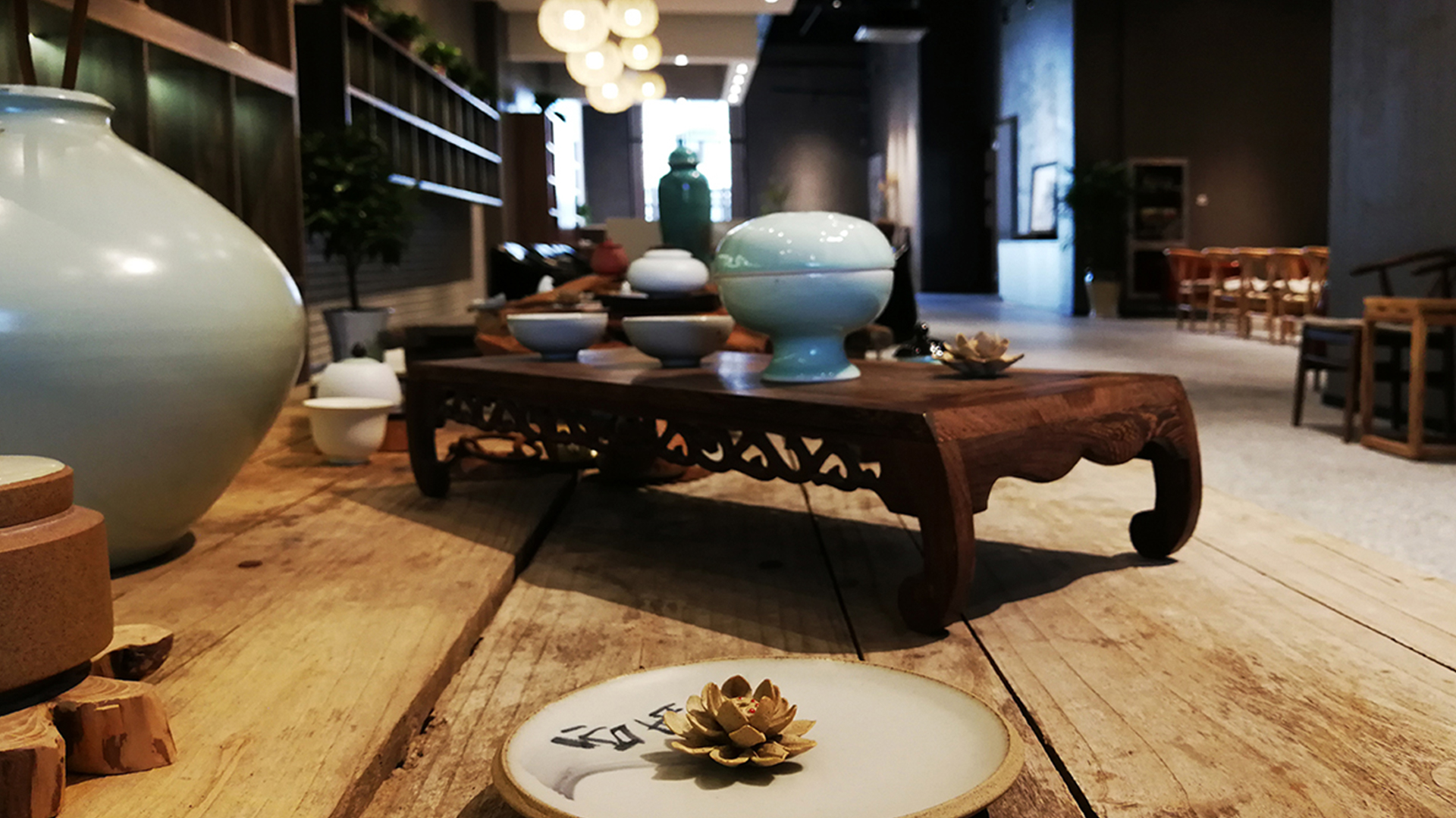 不爭論,不辯解,不過分堅持,讓本性自然釋放,也許有一天我們還會走向自己的反面。如果說平衡是世界的本來面貌,那么節(jié)制就是自我的修行。在欲望似乎沒有盡頭的今天,節(jié)制便顯得彌足珍貴。此項目運中江南園林中曲徑通幽之形,設(shè)計在方寸之間強化了藝術(shù)瓷器的雅致特別,進入后為一個集展示、零售、體驗及咖啡的綜合空間。一扇木門、一個櫥窗、一個景窗、一個圓形門廊,以多樣含蓄的方式與藝術(shù)對話。