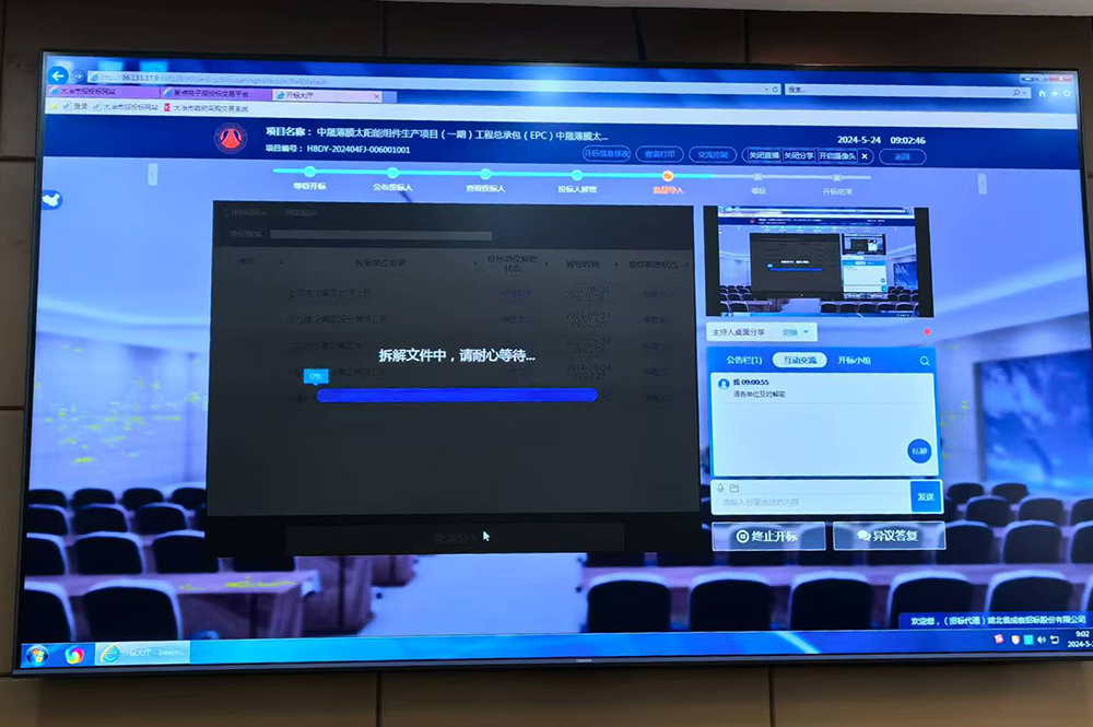 5月24日,黃石地區(qū)首例使用“三地聯(lián)評(píng)”的遠(yuǎn)程異地評(píng)標(biāo)項(xiàng)目——“中晟薄膜太陽(yáng)能組件生產(chǎn)項(xiàng)目(一期)工程總承包(EPC)”項(xiàng)目在大冶市公共資源交易中心、湖北省公共資源交易中心、武漢市公共資源交易中心順利完成評(píng)標(biāo)工作。